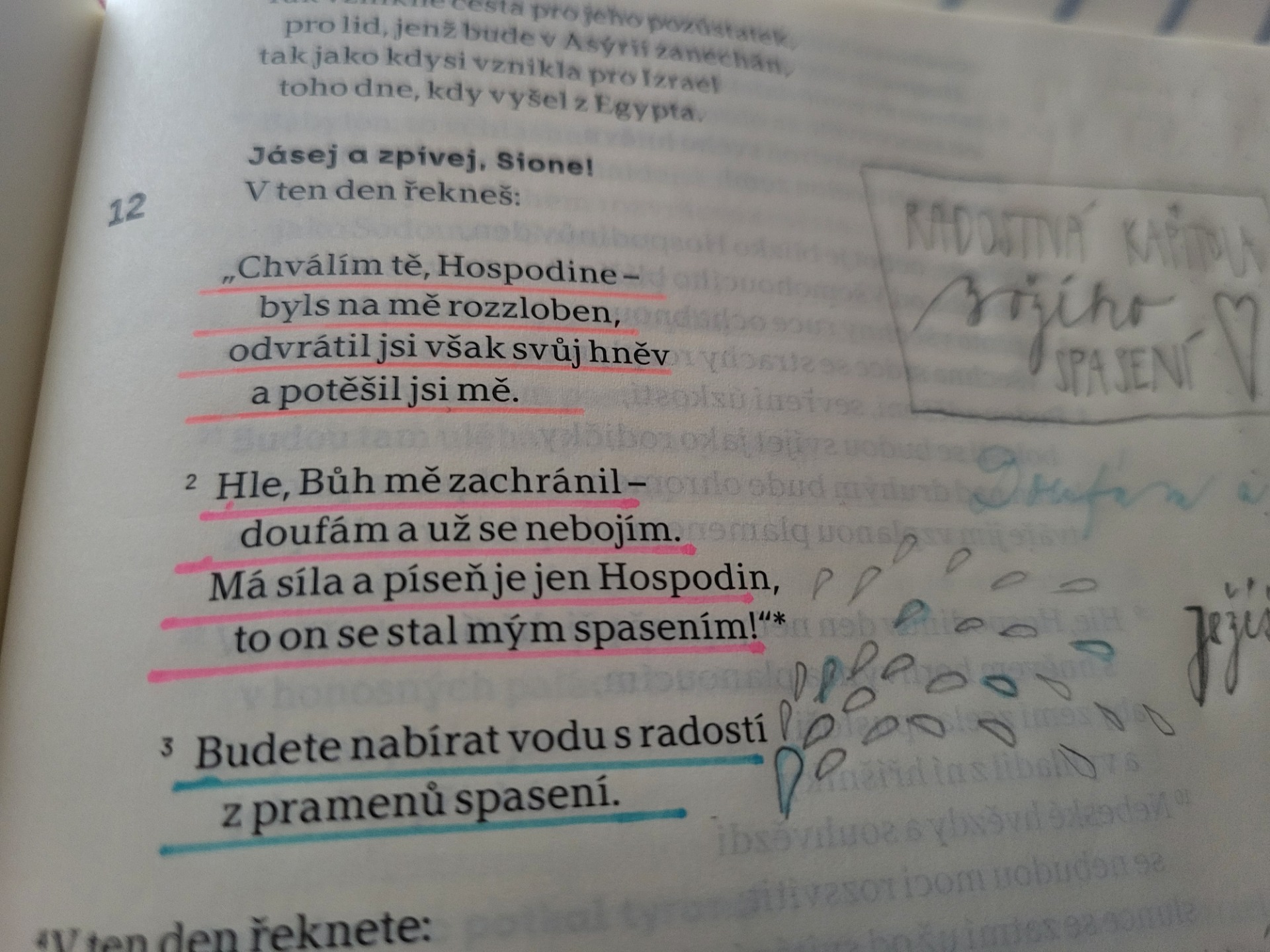 Na má slova dej pozor, k mým výrokům své ucho nakláněj, nikdy z nich nespouštěj své oči, hluboko v srdci si je uchovej. Věčnou smlouvu jsem Tebou uzavřel, láskou potvrdil, nepřítele porazil a Tvůj život k věčnosti vykoupil. Neboj se o chvíle, které věnuješ naslouchání mému hlasu, nejsou ztracené, ale plné toho nejvýživnějšího požehnání.